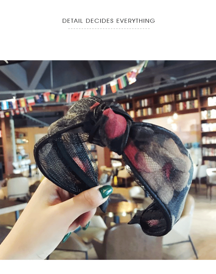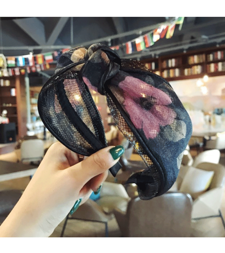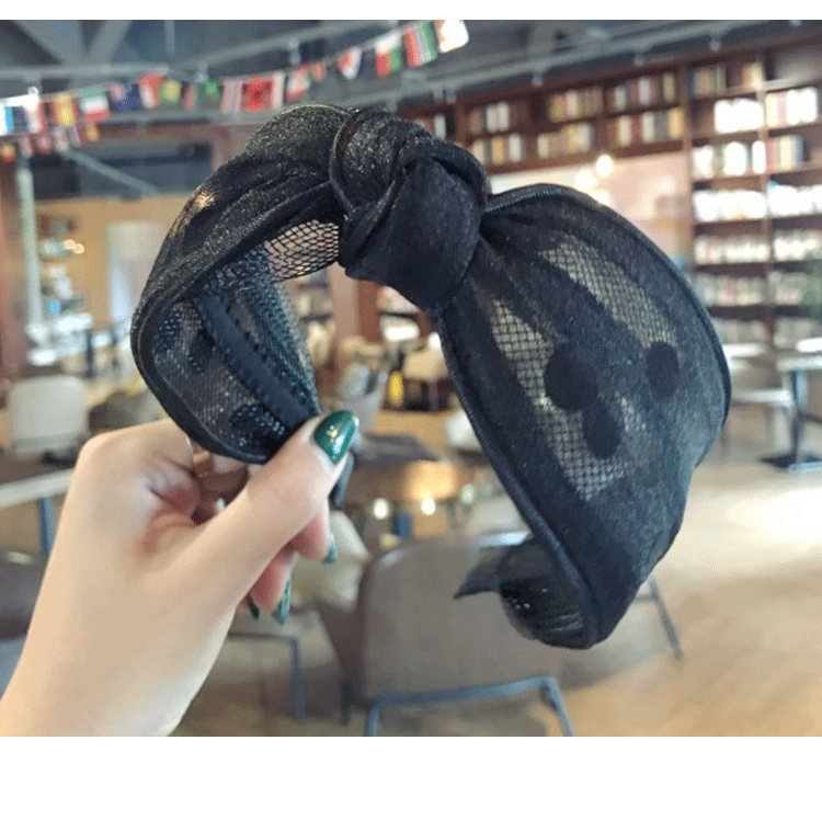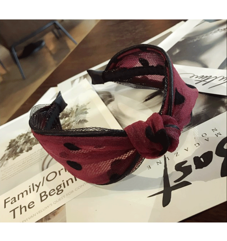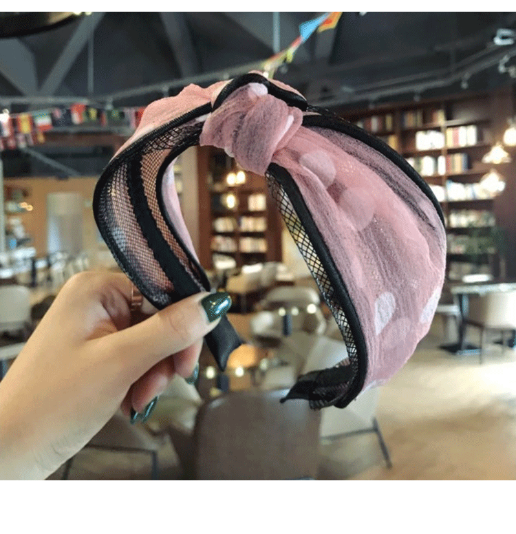 髮飾分類: 韓國新款蕾絲網紗波點碎花打結寬邊髮箍 顏色分類: 碎花黑, 碎花米黃, 碎花粉, 碎花藏青, 黑波點, 粉色波點, 暗紅波點, 深藍波點 風格: 日韓 材質: 絹紗 髮箍: 寬約6cm